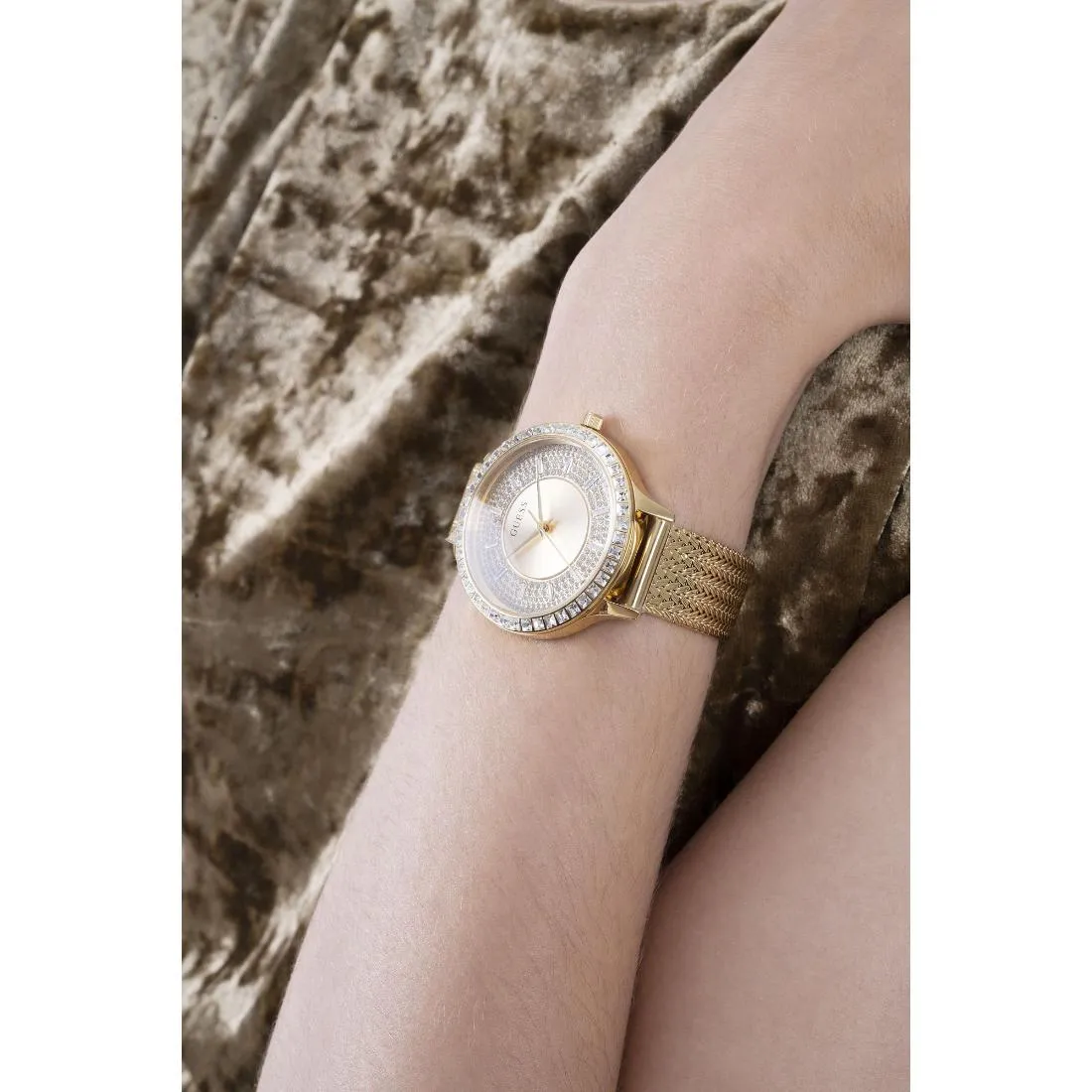 +This elegant Guess Dress women's watch features a 38 mm gold dial with analog display. Its sophisticated design and accurate timekeeping make it a versatile accessory for any occasion. The perfect blend of style and functionality, this watch is a must-have for any fashion-forward individual.